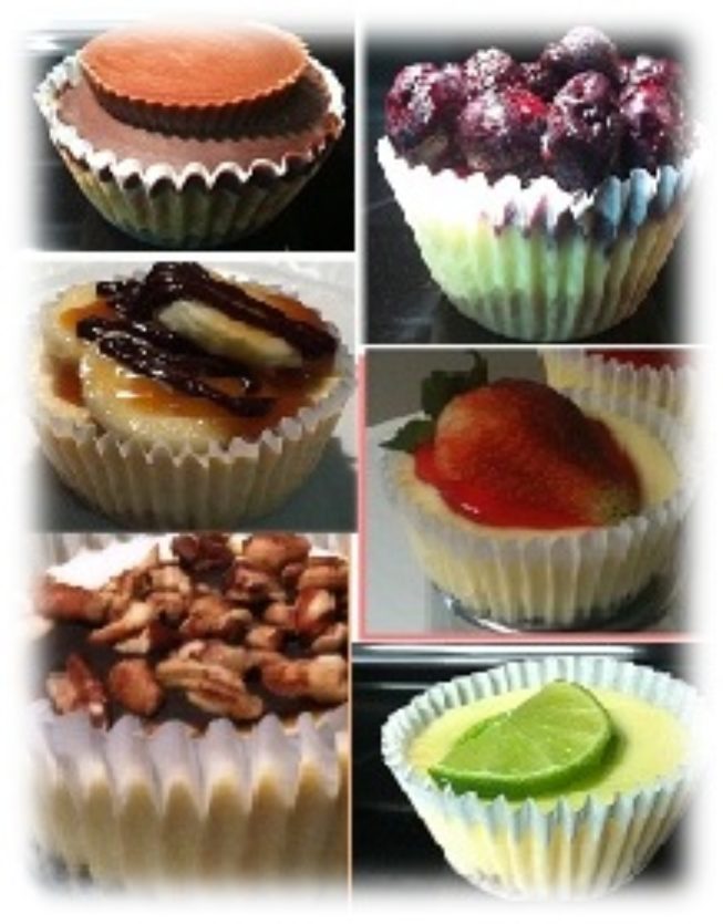 Assorted Cheesecake Cupcakes available in the following flavors (Peanut butter cup, key lime, blueberry, turtle, strawberry, banana cream, banana foster). Please select up to 4 different Flavors.