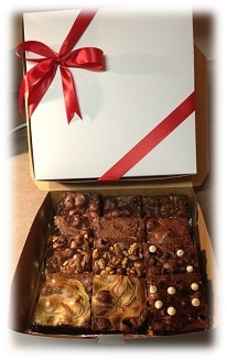 Surprise someone special with one of our Brownie Gift Samplers. The Sampler include Triple Chocolate Chip Brownies, Turtle Brownies, Walnut Chocolate Chip Brownies, and Classic Brownies. The brownies can be wrapped pretty with ribbon at no charge upon request. Great for Valentines Day, Christmas, Mother’s Day, Father’s Day, Birthdays, Anniversaries, Corporate Gifts, or you can send a gift “Just Because”.