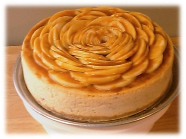 Plentiful fresh diced Granny Smith apples with a hint of cinnamon in our luscious rich creamy cheesecake and the delicious apples are sliced and beautifully arranged on the top of the cheesecake drizzled with thick rich homemade caramel. This refreshing Caramel Apple Cheesecake is smooth and delicious, and features vanilla wafers for a buttery thick cookie crust. Fresh Sweet and slightly tart Granny Smith apples and tasty cream cheese abounds in every bite: it’s pure decadence and delight
