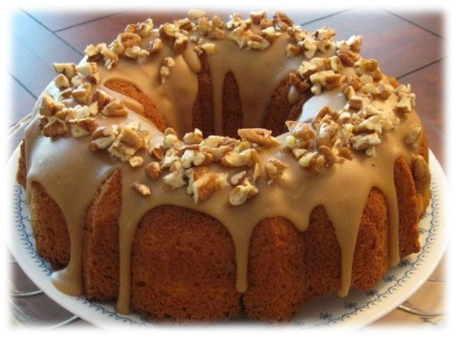 Our rich, moist, vanilla cake made with butter, eggs, cream, buttermilk, vanilla and sugar. Drowned with homemade caramel Icing and sprinkled toasted Georgia Pecans (optional).