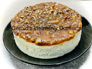 This wonderful Cheesecake was inspired by Southern Pecan Pie. Georgia Pecans nestling inside of the rich gooey filling. This flavored Cheesecake is made with farm fresh dairy products and cream cheese. The cheesecake is smooth, creamy and delicious and has no crust.