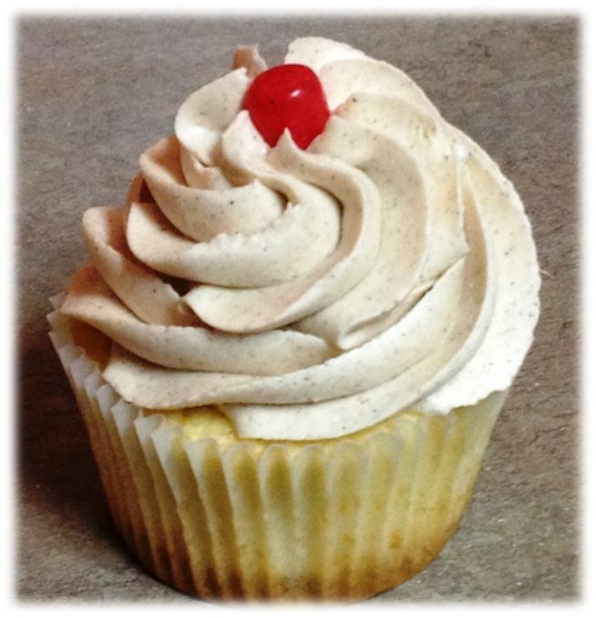 Our savory cinnamon cake filled topped with a cinnamon cream cheese icing and a topped with a red hot.