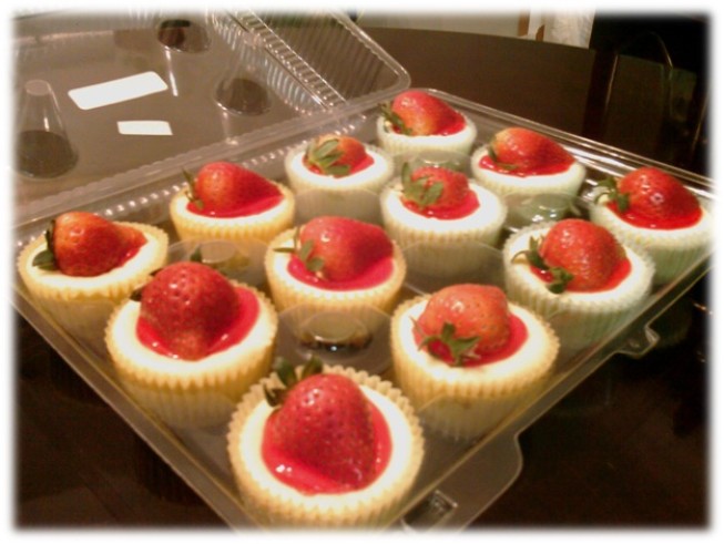 These cheesecake cupcakes are sold by the dozen . Great for portion control. Mouth watering strawberries lying on a thin layer of strawberry glaze on top. This refreshing Strawberry Cheesecake is made with farm fresh dairy products and cream cheese. The cheesecake is smooth and delicious, and feature vanilla wafers for a buttery thick cookie crust. Fresh strawberries and tasty cream cheese abound in every bite: it’s pure decadence and delight