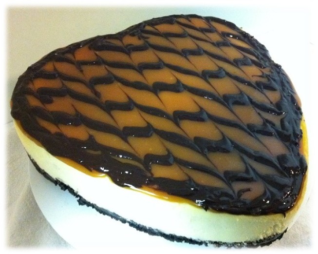 Our Velvety Valentine’s Day Caramel Chocolate Cheesecake is our version of a New York Style cheesecake with a chocolate cookie crust. It is topped with a silky delicious caramel sauce and drizzled with semi-sweet chocolate. It’s a velvety delight you’ll personally love.
