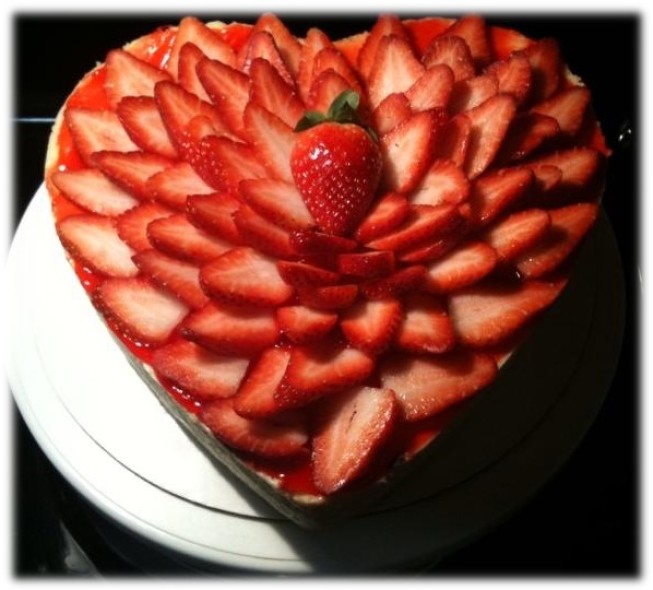 Plentiful fresh mouth watering strawberries lying on a thin layer of strawberry glaze on top. This refreshing Valentine’s Day heart shaped Strawberry Cheesecake is made with farm fresh dairy products and cream cheese. The cheesecake is smooth and delicious, and feature vanilla wafers for a buttery thick cookie crust.