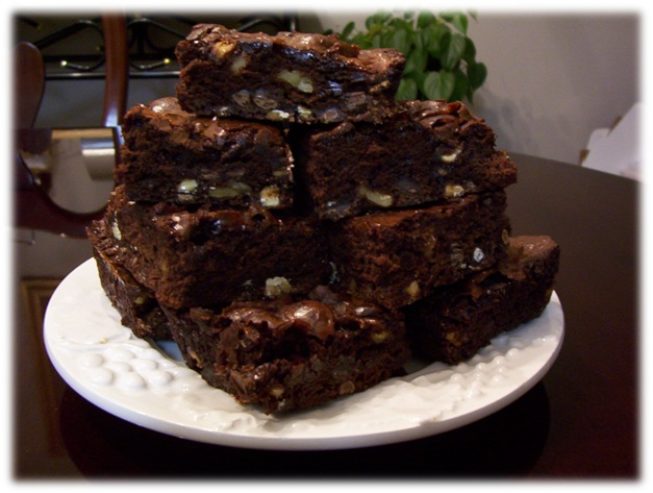 Made from scratch moist, rich, decadent brownies with Semi Sweet Chocolate Chips, and walnutss.
